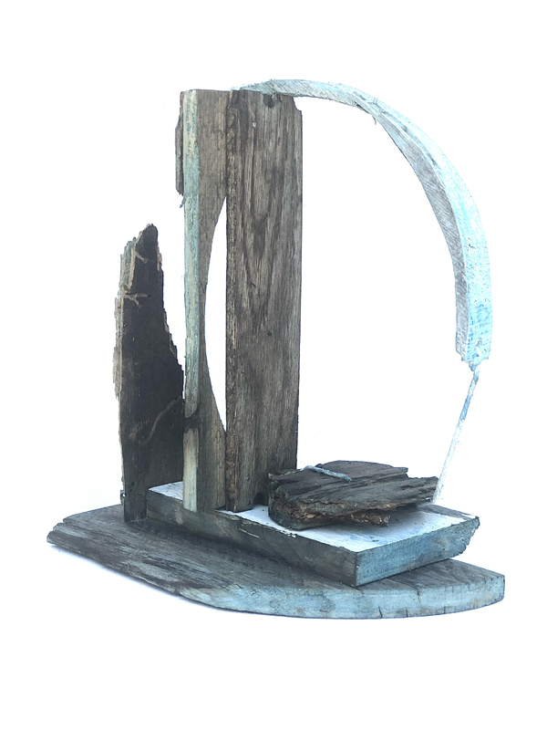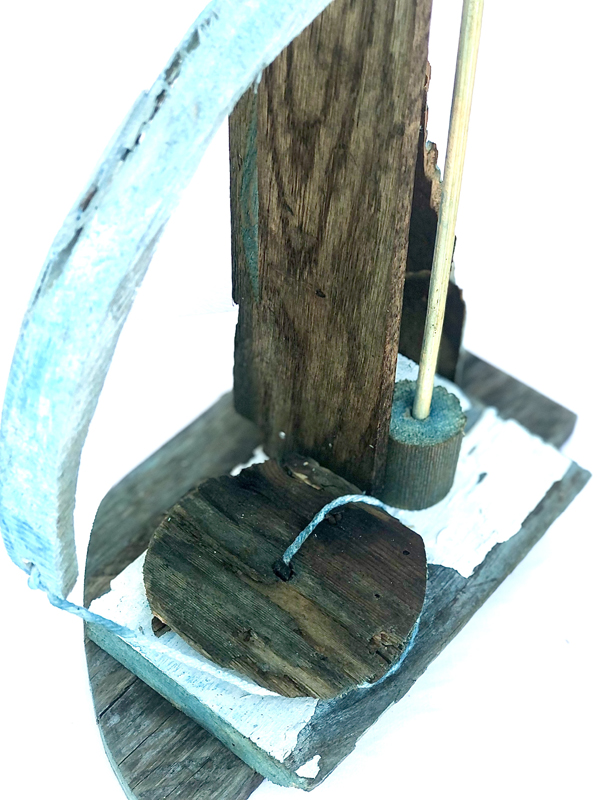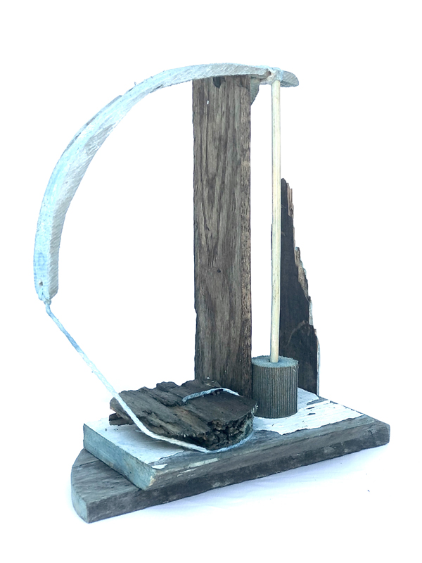 Recovered wood, string, 11 in. tall.